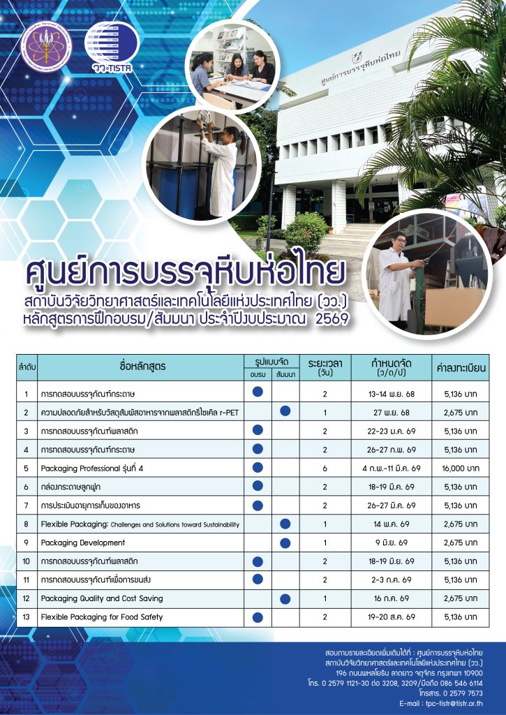 ○ ข่าวและกิจกรรม การบรรจุภัณฑ์ หลักสูตรการฝึกอบรม/สัมมนา ประจำปีงบประมาณ 2569 ศูนย์การบรรจุหีบห่อไทย TPC admin 1 ตุลาคม 2025 Views: 3