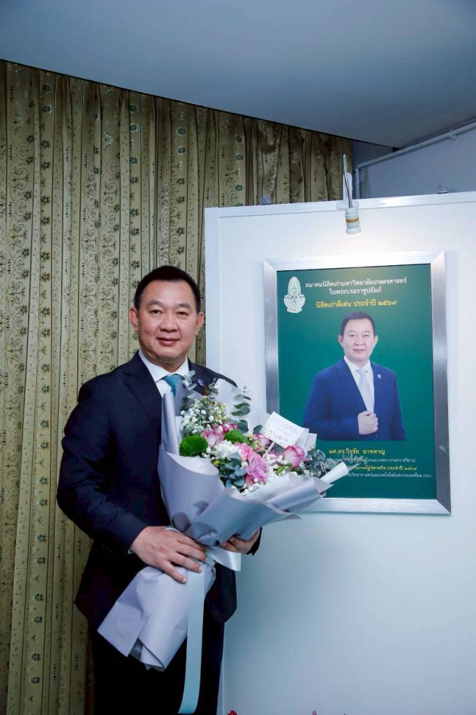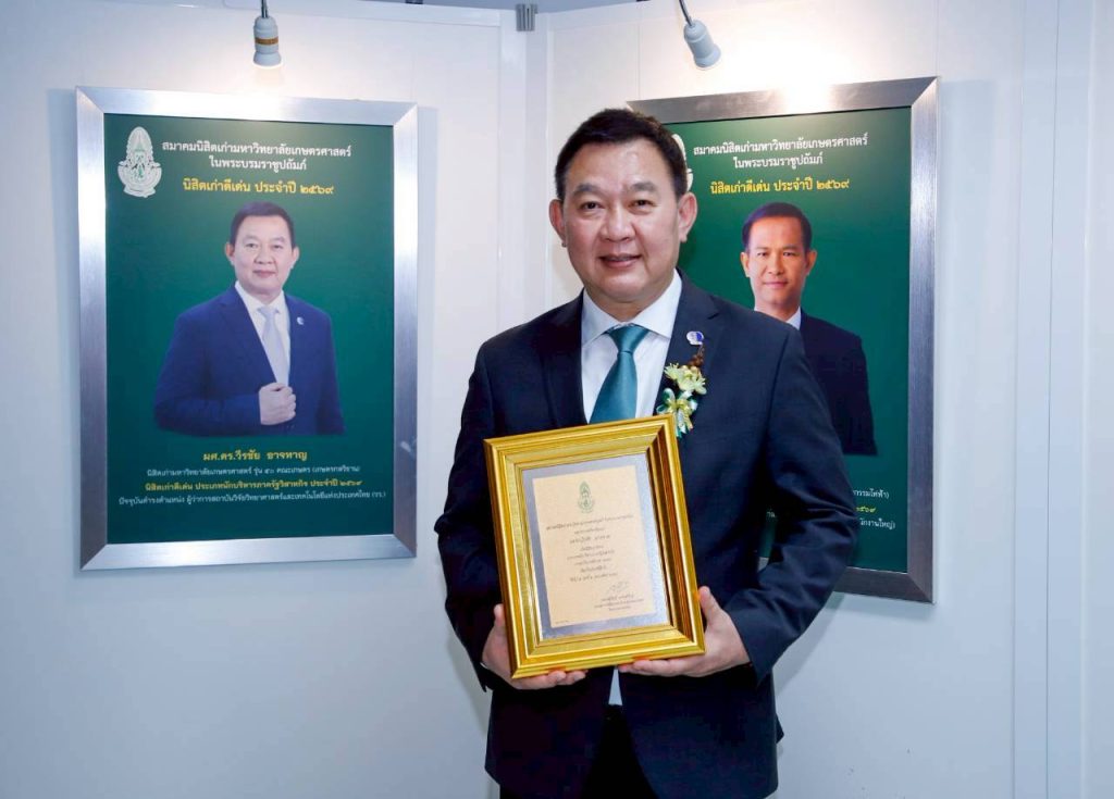 ผศ.ดร.วีรชัย อาจหาญ ผู้ว่าการ สถาบันวิจัยวิทยาศาสตร์และเทคโนโลยีแห่งประเทศไทย (วว.) กระทรวงการอุดมศึกษา วิทยาศาสตร์ วิจัยและนวัตกรรม (อว.) ซึ่งเป็นนิสิตเก่า มหาวิทยาลัยเกษตรศาสตร์ (มก.) รุ่น 50 เข้ารับโล่นิสิตเก่าดีเด่น มหาวิทยาลัยเกษตรศาสตร์ ประจำปี 2569 ประเภทนักบริหารภาครัฐวิสาหกิจ โดยเป็นหนึ่งในกิจกรรมสำคัญที่จัดขึ้นเนื่องในงานครบรอบ 83 ปี คล้ายวันสถาปนามหาวิทยาลัยเกษตรศาสตร์