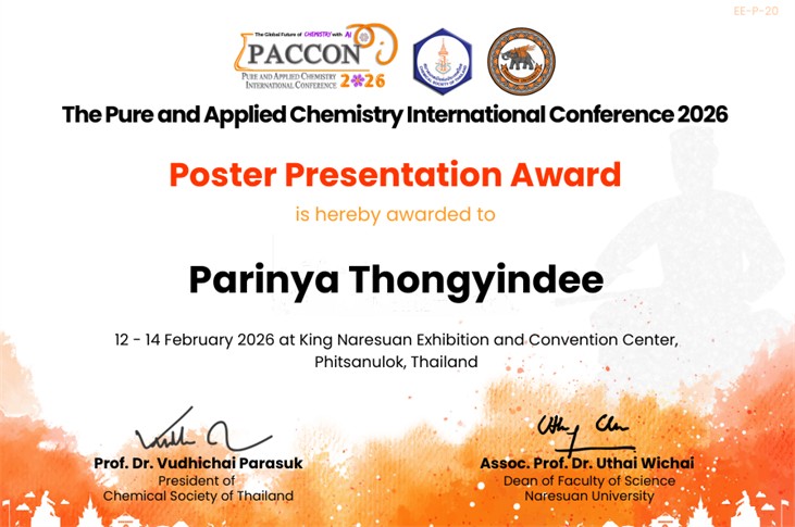 เนื่องในงานประชุมวิชาการนานาชาติ The Pure and Applied Chemistry International Conference 2026 (PACCON 2026) จัดขึ้นโดย สมาคมเคมีแห่งประเทศไทยฯ ร่วมกับ มหาวิทยาลัยนเรศวร ระหว่างวันที่ 12 – 14 กุมภาพันธ์ 2569 ณ KNECC มหาวิทยาลัยนเรศวร จ.พิษณุโลก