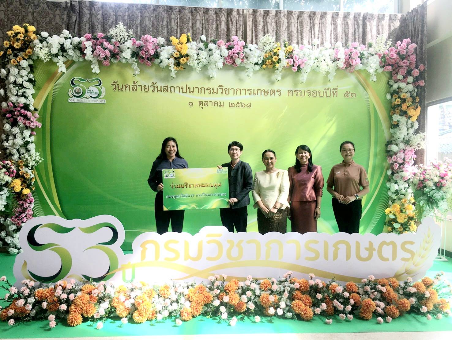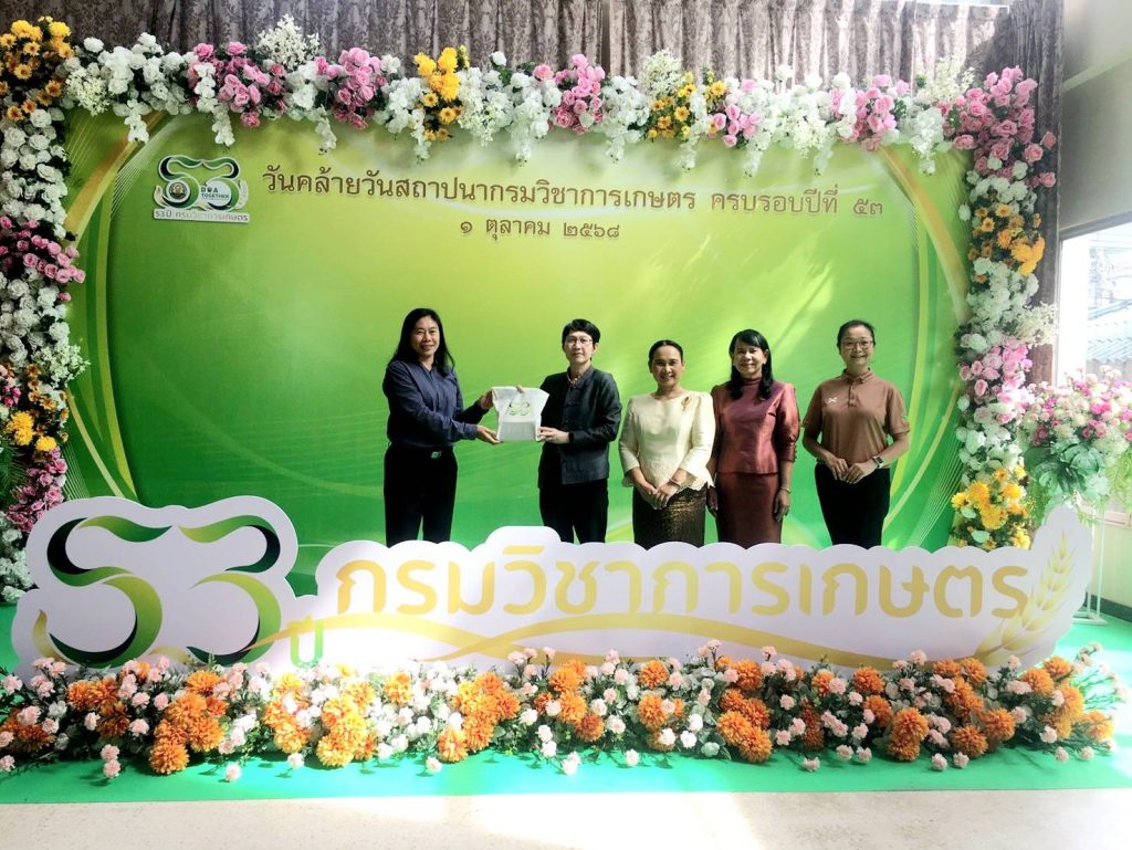 ดร.รจนา ตั้งกุลบริบูรณ์ ผอ.ศูนย์เชี่ยวชาญนวัตกรรมเกษตรสร้างสรรค์ เป็นผู้แทน สถาบันวิจัยวิทยาศาสตร์และเทคโนโลยีแห่งประเทศไทย (วว.) กระทรวงการอุดมศึกษา วิทยาศาสตร์ วิจัยและนวัตกรรม (อว.) ร่วมบริจาคสมทบทุนกองทุนสวัสดิการ กรมวิชาการเกษตร เพื่อช่วยเหลือผู้ประสบภัย เนื่องในวันคล้ายวันสถาปนากรมวิชาการเกษตร กระทรวงเกษตรและสหกรณ์ ครบรอบปีที่ 53 โดยมี นางสาวปรียานุช ทิพยะวัฒน์ รองอธิบดีกรมวิชาการเกษตร เป็นผู้รับมอบ ในวันที่ 1 ตุลาคม 2568 ณ กรมวิชาการเกษตร บางเขน เขตจตุจักร กรุงเทพฯ