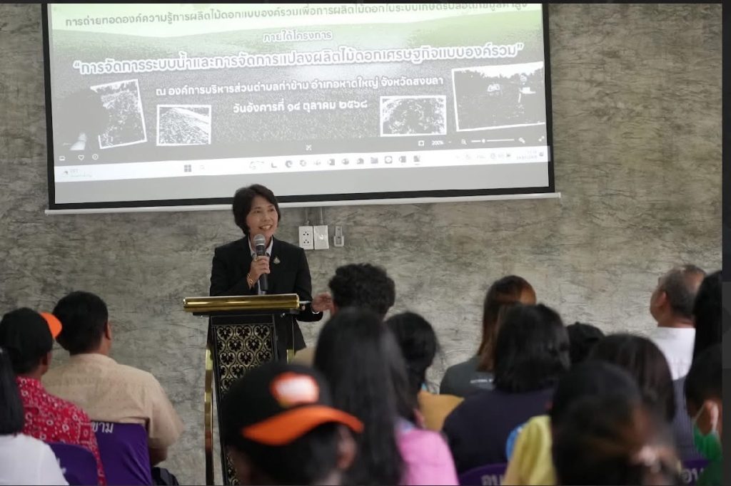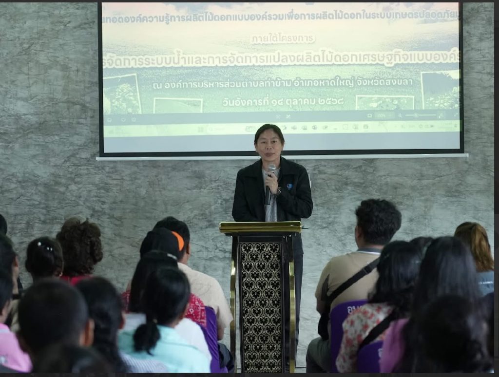 สถาบันวิจัยวิทยาศาสตร์และเทคโนโลยีแห่งประเทศไทย (วว.) ร่วมกับ สำนักงานการวิจัยแห่งชาติ (วช.) จัดกิจกรรม “อบรมถ่ายทอดองค์ความรู้การผลิตไม้ดอกแบบองค์รวมเพื่อการผลิตไม้ดอกในระบบเกษตรปลอดภัยมูลค่าสูง” เมื่อวันที่ 14 ตุลาคม 2568 ณ องค์การบริหารส่วนตำบลท่าข้าม อำเภอหาดใหญ่ จังหวัดสงขลา โดยมีผู้เข้าร่วมอบรมกว่า 130 ราย ประกอบด้วย ด้วยเกษตรกร ผู้ประกอบการ หน่วยงานภาครัฐ ภาคเอกชน และภาคีเครือข่ายในพื้นที่