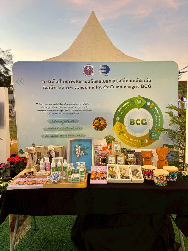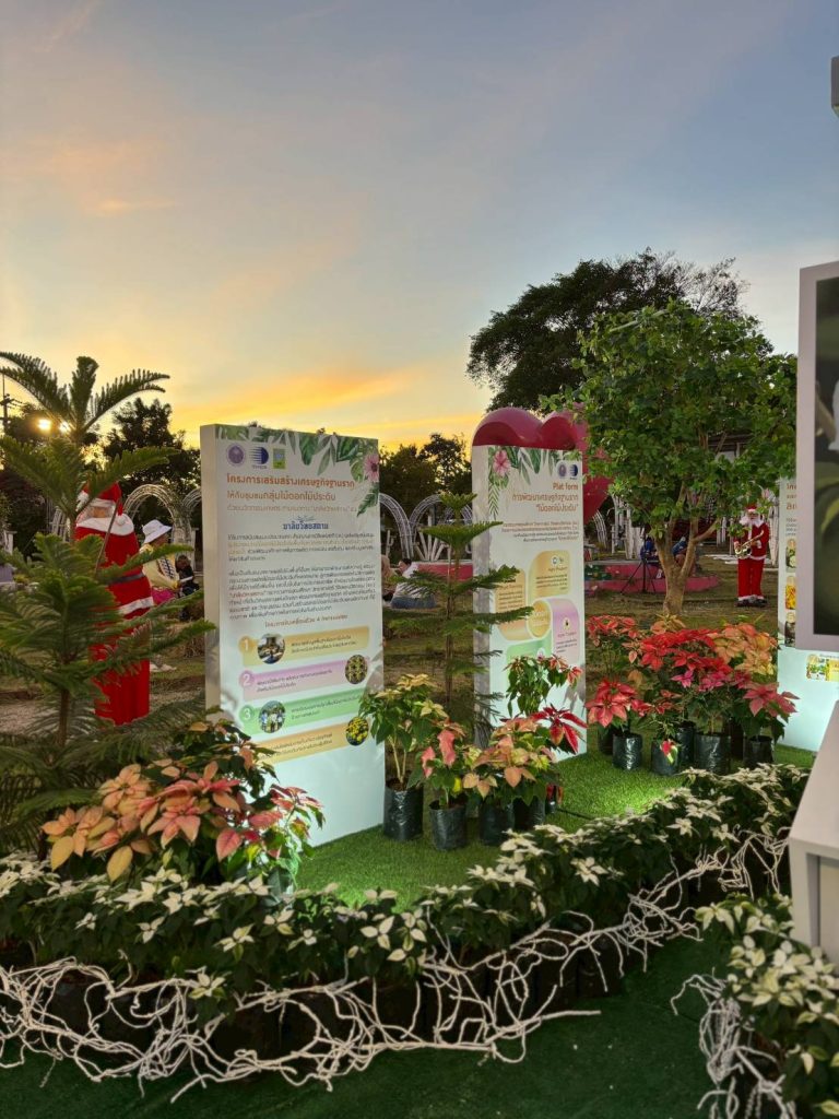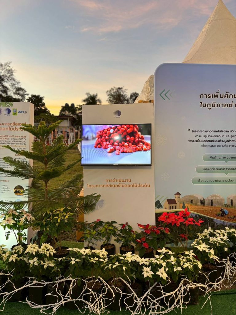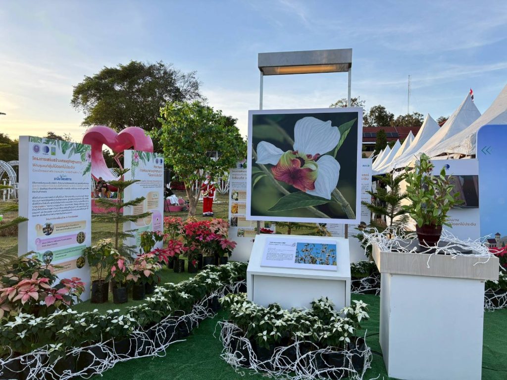 ซึ่งภายในบูธ วว. จัดแสดงผลงานในโครงการฯ อาทิ ต้นคริสต์มาสหลากสายพันธุ์ กระถางต้นไม้อัตลักษณ์จังหวัดเลย ผลิตภัณฑ์ที่แปรรูปจากไม้ดอกไม้ประดับ รวมทั้งหนังสือดอกไม้กินได้ Edible flowers ด้วย