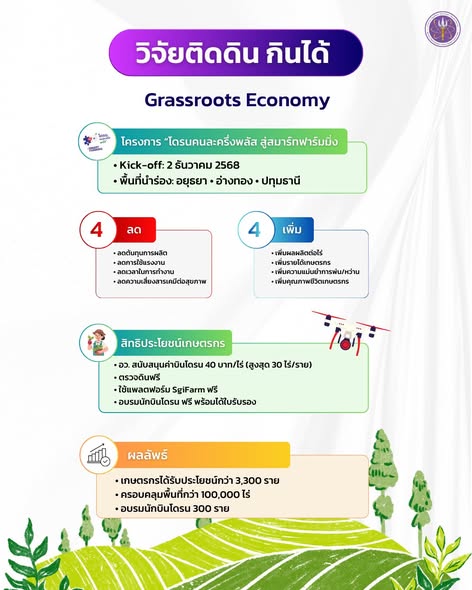 กลุ่มแรก “วิจัยติดดิน กินได้” มีเกษตรกรได้รับประโยชน์กว่า 3,300 ราย ครอบคลุมพื้นที่ 1 แสนไร่