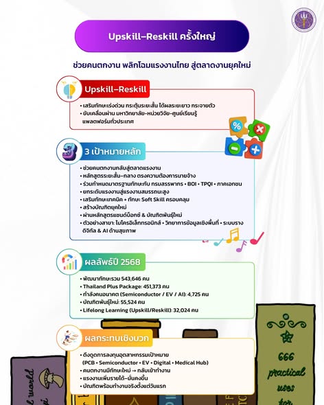 กลุ่มที่ 4 “Upskill–Reskill ครั้งใหญ่” ช่วยคนตกงาน พลิกโฉมแรงงานไทยสู่ตลาดงานยุคใหม่ สามารถพัฒนาทักษะให้กับแรงงานรวม 543,646 คน