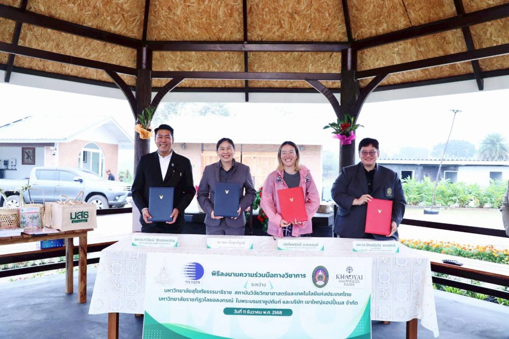 กระทรวงการอุดมศึกษา วิทยาศาสตร์ วิจัยและนวัตกรรม (อว.) โดย สถาบันวิจัยวิทยาศาสตร์และเทคโนโลยีแห่งประเทศไทย (วว.) ร่วมมือทางวิชาการกับภาคีเครือข่าย มหาวิทยาลัยสุโขทัยธรรมาธิราช (มสธ.) มหาวิทยาลัยราชภัฎวไลยอลงกรณ์ ในพระบรมราชูปถัมภ์ (มรวอ.) และบริษัทเขาใหญ่แฮปปี้เนส จำกัด โดยมีระยะเวลาดำเนินการ 5 ปี มุ่งดำเนินงานให้เกิดความยั่งยืน สร้างความเป็นอยู่ที่ดีให้กับเกษตรกรและชุมชน พร้อมทั้งเพิ่มขีดความสามารถการแข่งขันด้านเศรษฐกิจของประเทศ โดยคำนึงถึงผลกระทบทางสังคมและสิ่งแวดล้อม เป็นสำคัญ ในวันที่ 9 ธันวาคม 2568 ณ อำเภอปากช่อง จังหวัดนครราชสีมา
