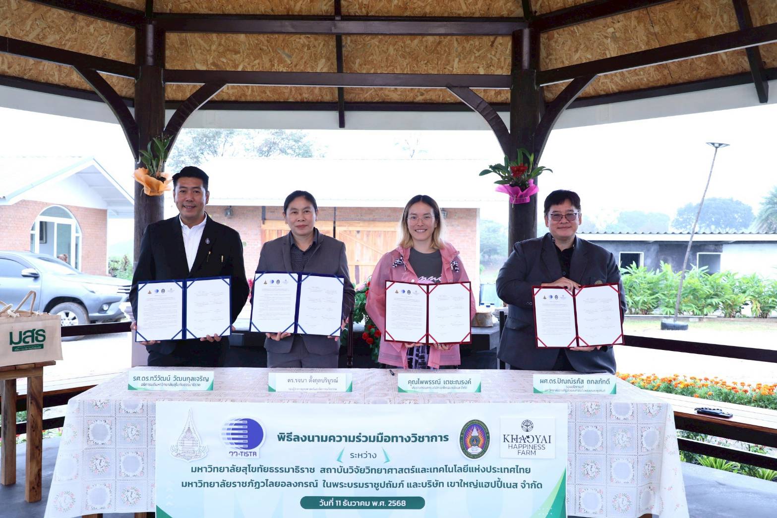 กระทรวงการอุดมศึกษา วิทยาศาสตร์ วิจัยและนวัตกรรม (อว.) โดย สถาบันวิจัยวิทยาศาสตร์และเทคโนโลยีแห่งประเทศไทย (วว.) ร่วมมือทางวิชาการกับภาคีเครือข่าย มหาวิทยาลัยสุโขทัยธรรมาธิราช (มสธ.) มหาวิทยาลัยราชภัฎวไลยอลงกรณ์ ในพระบรมราชูปถัมภ์ (มรวอ.) และบริษัทเขาใหญ่แฮปปี้เนส จำกัด โดยมีระยะเวลาดำเนินการ 5 ปี มุ่งดำเนินงานให้เกิดความยั่งยืน สร้างความเป็นอยู่ที่ดีให้กับเกษตรกรและชุมชน พร้อมทั้งเพิ่มขีดความสามารถการแข่งขันด้านเศรษฐกิจของประเทศ โดยคำนึงถึงผลกระทบทางสังคมและสิ่งแวดล้อม เป็นสำคัญ ในวันที่ 9 ธันวาคม 2568 ณ อำเภอปากช่อง จังหวัดนครราชสีมา