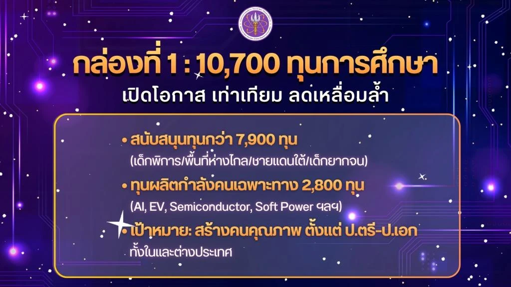 1) ทุนการศึกษาเท่าเทียม ลดเหลื่อมล้ำ พร้อมสร้างคนรองรับอนาคตกว่า 1 หมื่นทุน