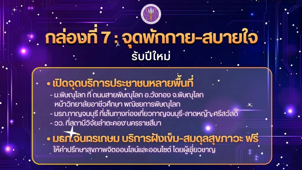 7) เปิดจุดบริการประชาชน พักกาย สบายใจ รับปีใหม่ 69