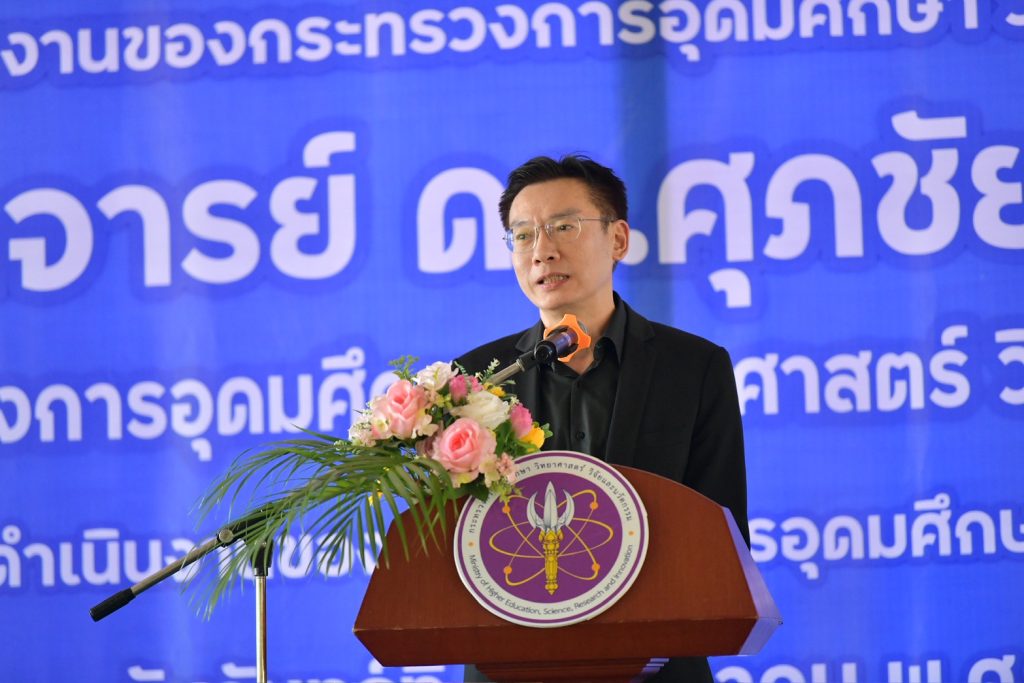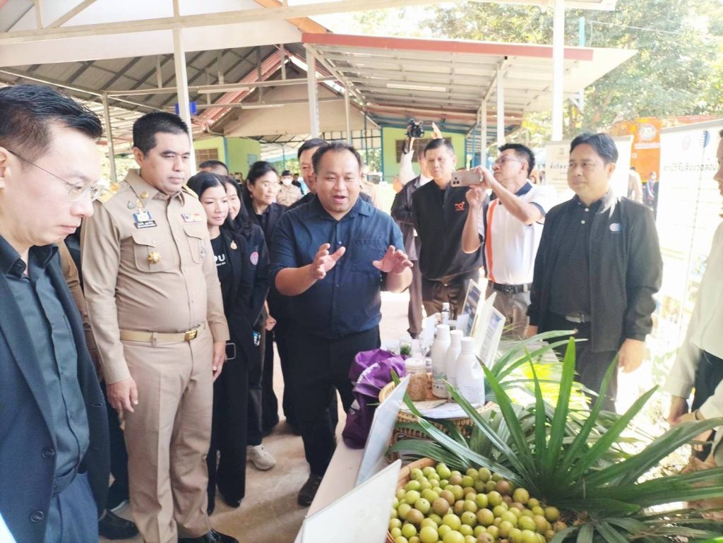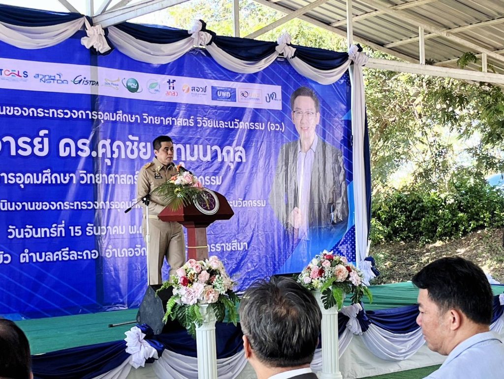 ศ.ดร.ศุภชัย ปทุมนากุล ปลัดกระทรวงการอุดมศึกษา วิทยาศาสตร์ วิจัยและนวัตกรรม (อว.) และคณะผู้บริหาร หน่วยงานในสังกัด พร้อมด้วย ผศ.ดร.วีรชัย อาจหาญ ผู้ว่าการ สถาบันวิจัยวิทยาศาสตร์และเทคโนโลยีแห่งประเทศไทย (วว.) และคณะ ร่วมลงพื้นที่ติดตามการดำเนินงานของกระทรวง อว. ณ อำเภอห้วยแถลง และอำเภอจักราช จังหวัดนครราชสีมา ได้แก่ การเยี่ยมชมการขับเคลื่อนงานด้าน อววน. ยกระดับคุณภาพชีวิต ผ่านนิทรรศการนวัตกรรมการพัฒนาผลิตภัณฑ์ การยกระดับเกษตรอัจฉริยะ และหน่วยให้บริการประชาชนด้านการตรวจสุขภาพ โดยมี นายอนุพงศ์ สุขสมนิตย์ ผู้ว่าราชการจังหวัดนครราชสีมา กล่าวต้อนรับ
