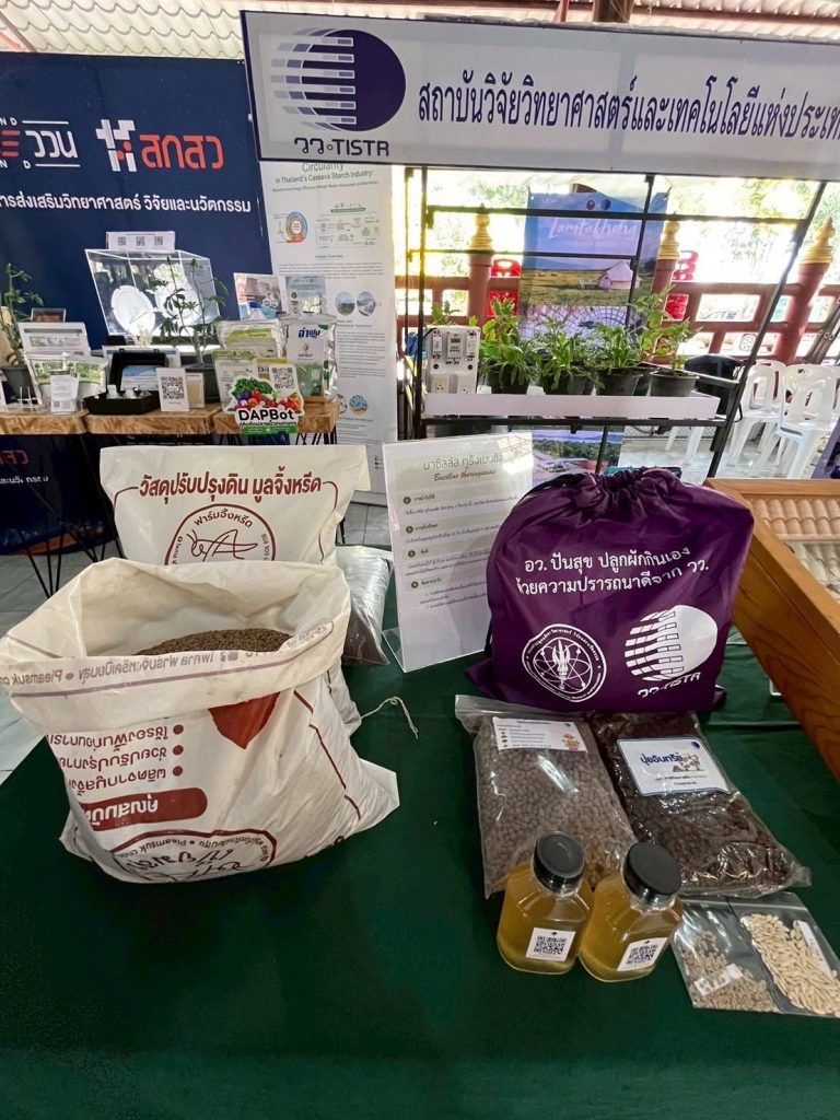 โอกาสนี้ วว. โดย สถานีวิจัยลำตะคอง และสถานีวิจัยสิ่งแวดล้อมสะแกราช ได้ร่วมจัดแสดงนิทรรศการผลงาน “อว. ปันสุข ปลูกผักกินเอง” พร้อมแจกเมล็ดผัก ปุ๋ยอินทรีย์ ปุ๋ยอินทรีย์เคมี และสารชีวภัณฑ์ เพื่อสร้างความมั่นคงทางอาหาร ได้ผักสด ปลอดภัย ไร้สารเคมี ช่วยประหยัดค่าใช้จ่าย ลดโลกร้อน สร้างพื้นที่สีเขียว รวมทั้งเป็นกิจกรรมเสริมรายได้/สุขภาพจิต และสร้างความสัมพันธ์ที่ดีในครอบครัวและชุมชน