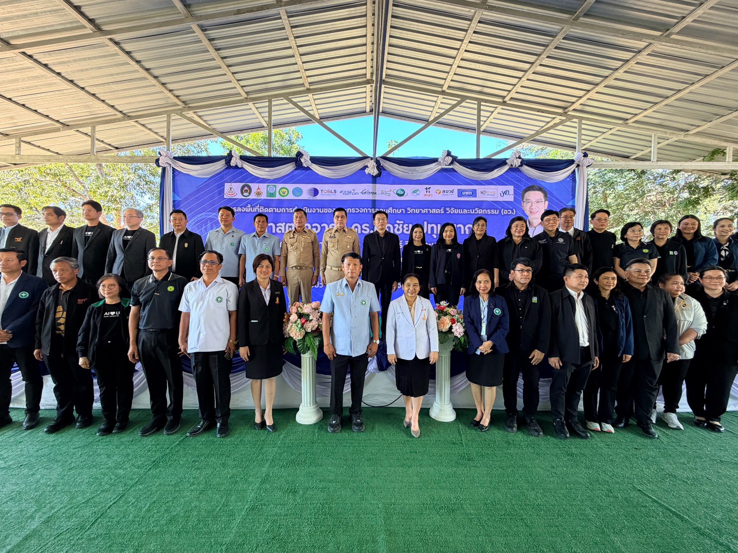 ศ.ดร.ศุภชัย ปทุมนากุล ปลัดกระทรวงการอุดมศึกษา วิทยาศาสตร์ วิจัยและนวัตกรรม (อว.) และคณะผู้บริหาร หน่วยงานในสังกัด พร้อมด้วย ผศ.ดร.วีรชัย อาจหาญ ผู้ว่าการ สถาบันวิจัยวิทยาศาสตร์และเทคโนโลยีแห่งประเทศไทย (วว.) และคณะ ร่วมลงพื้นที่ติดตามการดำเนินงานของกระทรวง อว. ณ อำเภอห้วยแถลง และอำเภอจักราช จังหวัดนครราชสีมา ได้แก่ การเยี่ยมชมการขับเคลื่อนงานด้าน อววน. ยกระดับคุณภาพชีวิต ผ่านนิทรรศการนวัตกรรมการพัฒนาผลิตภัณฑ์ การยกระดับเกษตรอัจฉริยะ และหน่วยให้บริการประชาชนด้านการตรวจสุขภาพ โดยมี นายอนุพงศ์ สุขสมนิตย์ ผู้ว่าราชการจังหวัดนครราชสีมา กล่าวต้อนรับ
