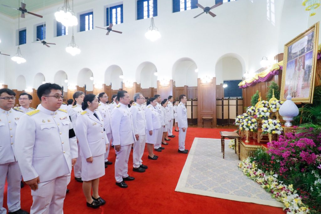 ศ.ดร.ศุภชัย ปทุมนากุล ปลัดกระทรวงการอุดมศึกษา วิทยาศาสตร์ วิจัยและนวัตกรรม (อว.) นางสาววราภรณ์ รุ่งตระการ รองปลัดกระทรวง อว. พร้อมด้วยคณะผู้บริหารระดับสูงในสังกัดกระทรวง อว. หัวหน้าหน่วยงาน อว. ข้าราชการ พนักงาน และเจ้าหน้าที่ ร่วมลงนามถวายพระพรพระบาทสมเด็จพระเจ้าอยู่หัว และสมเด็จพระนางเจ้า ฯ พระบรมราชินี เนื่องในเทศกาลวันขึ้นปีใหม่