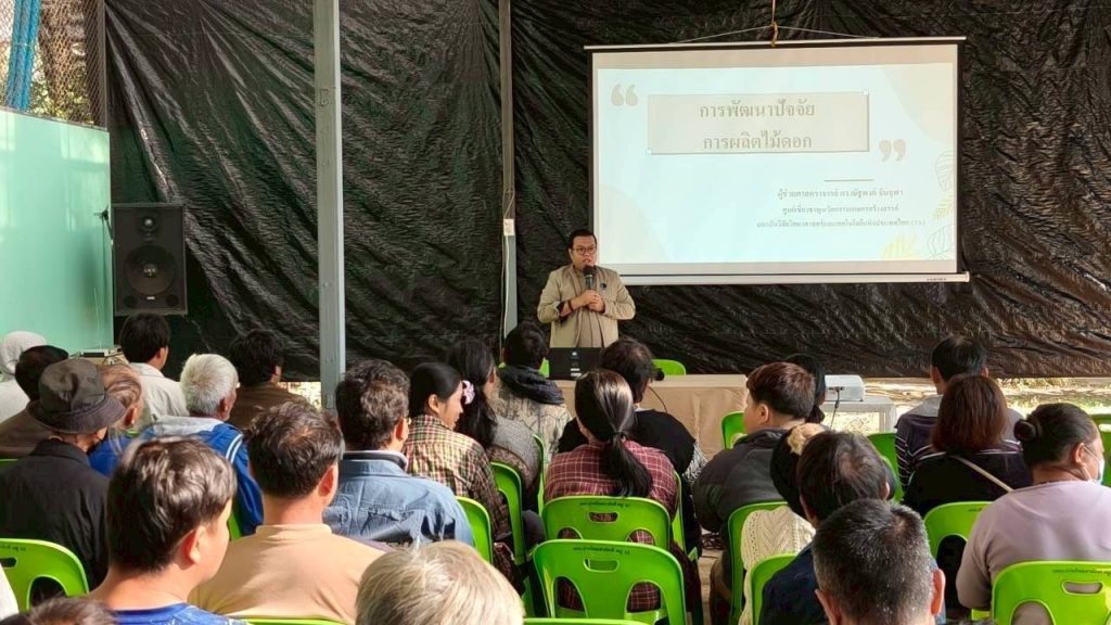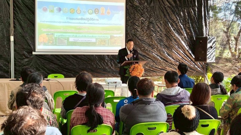 (7 มกราคม 2569 / ณ มูลนิธิโครงหลวงห้วยลึก ตำบลปิงโค้ง อำเภอเชียงดาว จังหวัดเชียงใหม่) ดร.พงศธร ประภักรางกูล รองผู้ว่าการวิจัยและพัฒนาด้านอุตสาหกรรมชีวภาพ สถาบันวิจัยวิทยาศาสตร์และเทคโนโลยีแห่งประเทศไทย (วว.) เป็นประธานเปิดงาน การถ่ายทอดองค์ความรู้ ภายใต้โครงการ “การจัดการระบบน้ำและการจัดการแปลงผลิตไม้ดอกเศรษฐกิจแบบองค์รวม ซึ่งได้รับงบประมาณจากสำนักงานการวิจัยแห่งชาติ (วช.)โดยมี ผู้ช่วยศาสตราจารย์ ดร.ณัฐพงค์ จันจุฬา นักวิจัยศูนย์เชี่ยวชาญนวัตกรรมเกษตรสร้างสรรค์ วว. เป็นหัวหน้าโครงการ โอกาสนี้ ได้เยี่ยมชมการดำเนินงานการปรับปรุงพันธุ์ ทดสอบพันธุ์เบญจมาศ ของ วว. ร่วมกับมูลนิธิโครงการหลวง ภายใต้ทุน ววน. ทั้งมีเกษตรกรเข้าร่วม 108 ราย เจ้าหน้าที่ฝ่ายไม้ดอกของมูลนิธิโครงการหลวง 20 ราย พื้นที่กว่า 220 ไร่ ในการปลูกเบญจมาศ ซึ่งหัวรายละเอียดในการอบรมเชิงปฏิบัติการ โครงการการจัดการระบบน้ำและการจัดการแปลงไม้ดอกเศรษฐกิจแบบองค์รวม