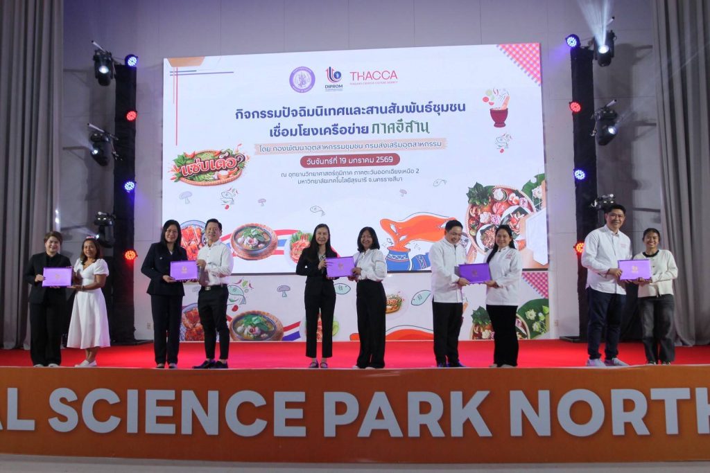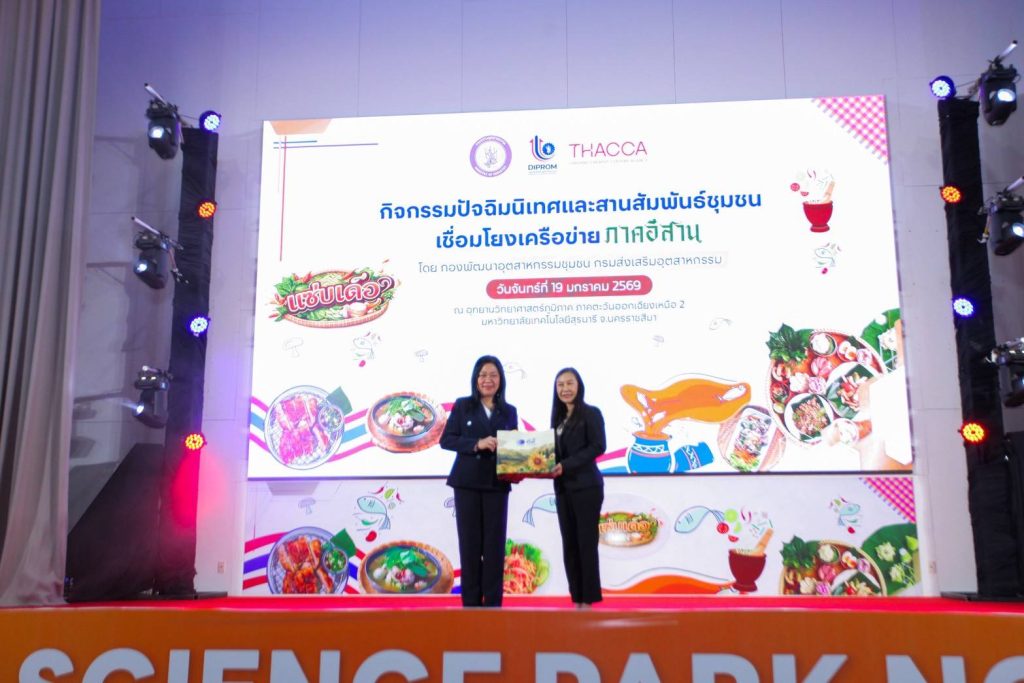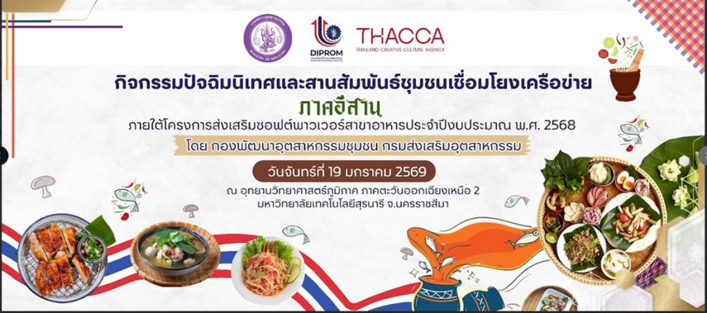 นางสาวสุวิมล จินตวัฒน์ ผู้อำนวยการ ศูนย์ส่งเสริมอุตสาหกรรมภาคที่ 6 กรมส่งเสริมอุตสาหกรรม (ดีพร้อม) กระทรวงอุตสาหกรรม เป็นประธานเปิด “กิจกรรมปัจฉิมนิเทศและสานสัมพันธ์ชุมชนเชื่อมโยงเครือข่าย ภาคตะวันออกเฉียงเหนือ” ภายใต้โครงการส่งเสริมซอฟต์พาวเวอร์ สาขาอาหาร ประจำปีงบประมาณ พ.ศ. 2568 โดย สถาบันวิจัยวิทยาศาสตร์และเทคโนโลยีแห่งประเทศไทย (วว.) กระทรวงการอุดมศึกษา วิทยาศาสตร์ วิจัยและนวัตกรรม (อว.) ได้รับมอบหมายจาก ดีพร้อม ดำเนินการจัดกิจกรรม