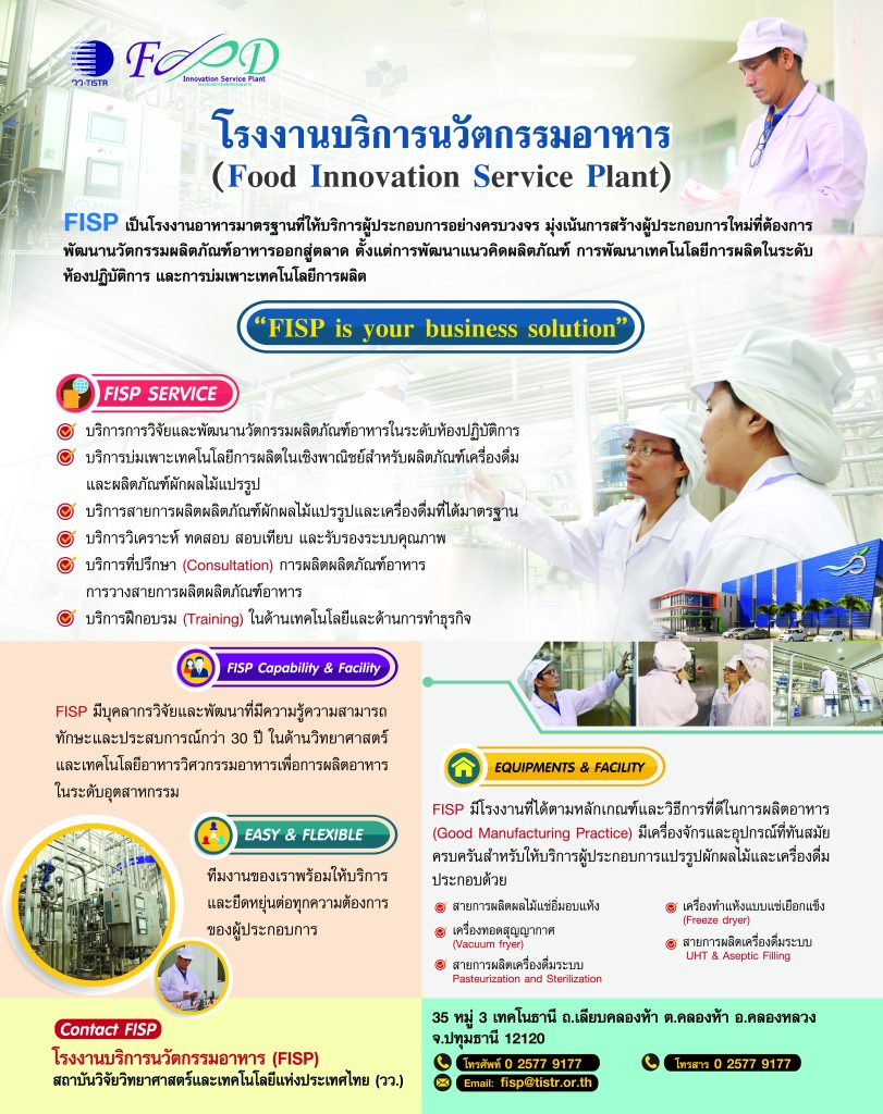 กระทรวงการอุดมศึกษา วิทยาศาสตร์ วิจัยและนวัตกรรม (อว.)  โดย โรงงานบริการนวัตกรรมอาหาร (FISP)  ศูนย์เชี่ยวชาญนวัตกรรมอาหารสุขภาพ (ศนอ.) สำนักจัดการเทคโนโลยีและนวัตกรรม (สจท.) สถาบันวิจัยวิทยาศาสตร์และเทคโนโลยีแห่งประเทศไทย (วว.)  จัดกิจกรรมอบรม “เปิดบ้าน เปิดโอกาส เปิดทางธุรกิจ : Open House FISP”  ในวันที่ 12 กุมภาพันธ์ 2569 ณ วว. เทคโนธานี คลองห้า จ.ปทุมธานี