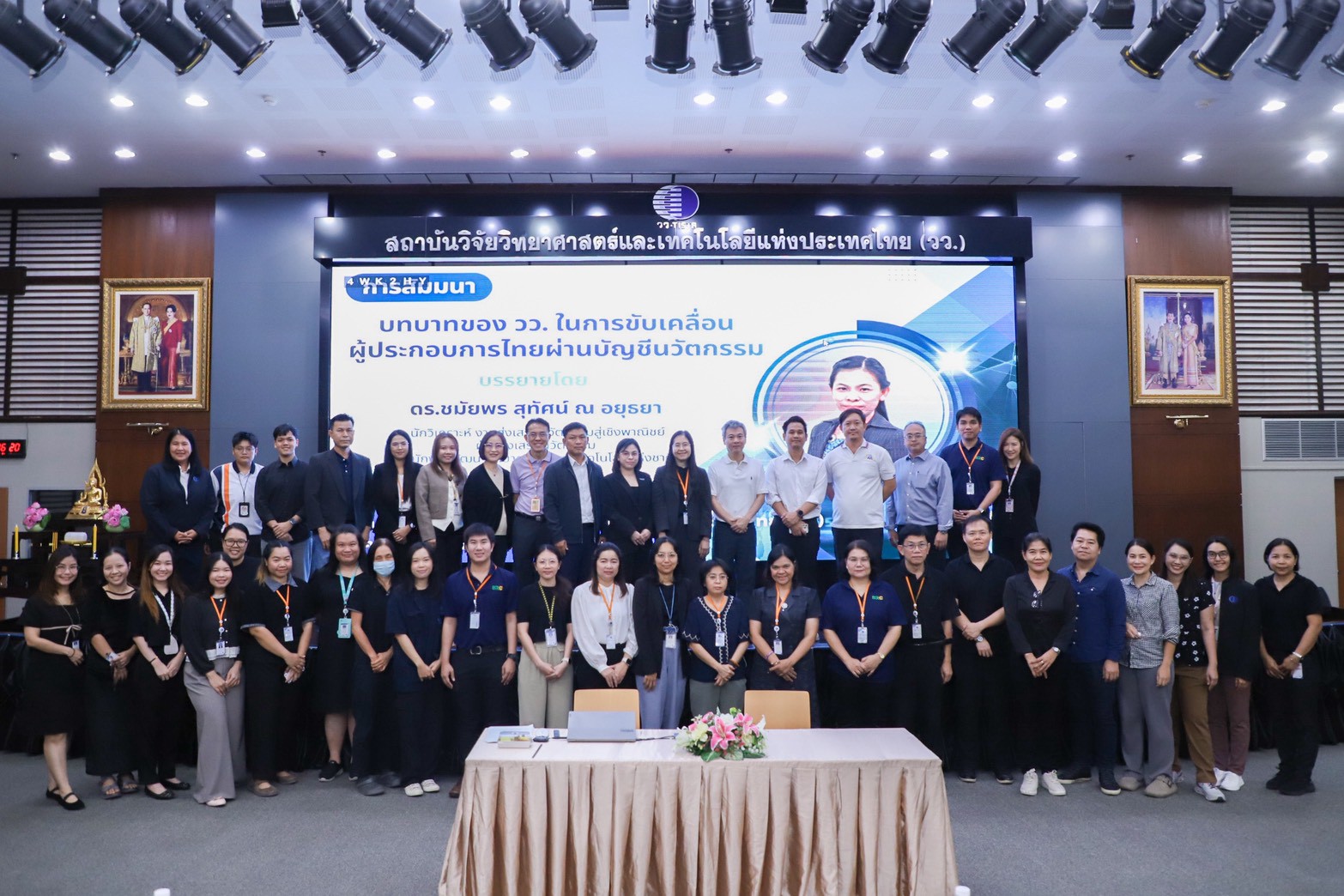 สถาบันวิจัยวิทยาศาสตร์และเทคโนโลยีแห่งประเทศไทย (วว.) กระทรวงการอุดมศึกษา วิทยาศาสตร์ วิจัยและนวัตกรรม (อว.)โดย สำนักจัดการเทคโนโลยีและนวัตกรรม (สจท.) จัดการสัมมนาหัวข้อ “บทบาทของ วว. ในการขับเคลื่อนผู้ประกอบการไทยผ่านบัญชีนวัตกรรม” เมื่อวันที่ 23 กุมภาพันธ์ 2569 ณ ห้องประชุมใหญ่ชั้น 5 อาคาร Admin วว. เทคโนธานี