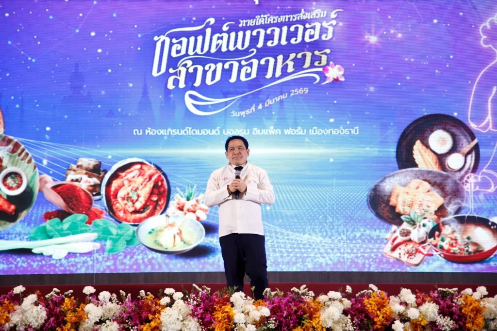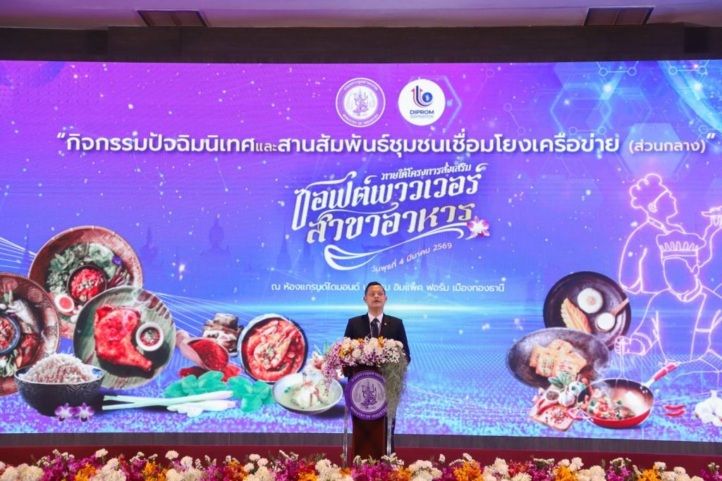 กรุงเทพฯ 4 มีนาคม 2569 อิมแพค เมืองทองธานี – กระทรวงอุตสาหกรรม โดย กรมส่งเสริมอุตสาหกรรม หรือดีพร้อม (DIPROM) เดินหน้าขับเคลื่อนยุทธศาสตร์ซอฟต์พาวเวอร์อาหารไทย พร้อมประกาศความสำเร็จในการยกระดับทักษะกำลังคนครั้งใหญ่ผ่านโครงการส่งเสริมซอฟต์พาวเวอร์สาขาอาหาร ประจำปีงบประมาณ พ.ศ. 2568