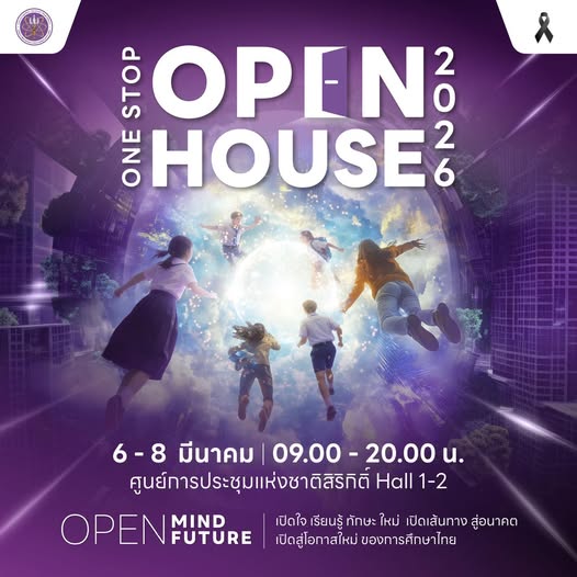 งาน ‘One Stop Open House 2026’ เปิดให้ผู้ที่สนใจ ไม่ว่าจะเป็นนักเรียน นักศึกษา ผู้ปกครอง และประชาชนทั่วไป เข้าร่วมงานฟรี! ระหว่างวันที่ 6 – 8 มีนาคม 2569 เวลา 09.00 – 20.00 น. ณ ฮอลล์ 1–2 ชั้น G ศูนย์การประชุมแห่งชาติสิริกิติ์