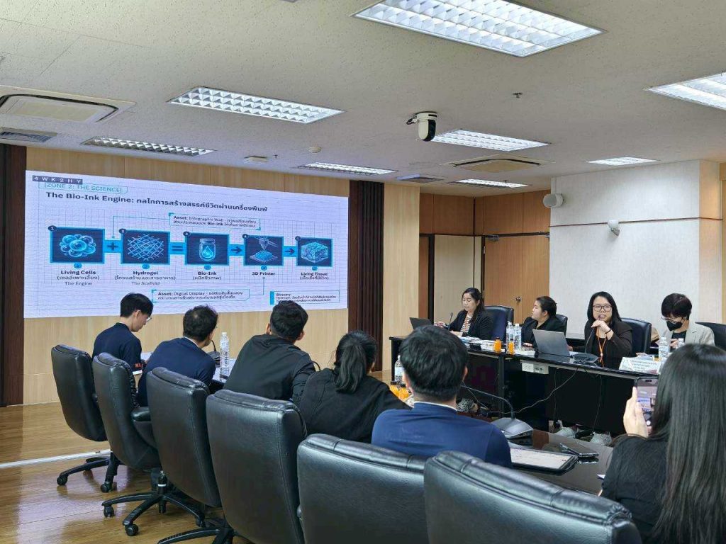 กระทรวงการอุดมศึกษา วิทยาศาสตร์ วิจัยและนวัตกรรม (อว.) โดย สถาบันวิจัยวิทยาศาสตร์และเทคโนโลยีแห่งประเทศไทย (วว.) นำโดย นายมนตรี แก้วดวง รักษาการ ผู้อำนวยการ ศูนย์เชี่ยวชาญนวัตกรรมเกษตรสร้างสรรค์ (ศนก). พร้อมด้วยคณะนักวิจัยและบุคลากร กองบริการธุรกิจนวัตกรรม สำนักจัดการเทคโนโลยีและนวัตกรรม ให้การต้อนรับและประชุมหารือร่วมกับ นายอานุภาพ สกุลงาม ผู้อำนวยการ กองวิชาการวิทยาศาสตร์ องค์การพิพิธภัณฑ์วิทยาศาสตร์แห่งชาติ (อพวช.) และคณะ เพื่อวางแนวทางถ่ายทอดองค์ความรู้จากงานวิจัยให้แก่เยาวชนในรูปแบบนิทรรศการ ในพื้นที่ฟิวเจอเรียม (FUTURIUM) ศูนย์นวัตกรรมแห่งอนาคต อพวช. ในวันที่ 27 เมษายน 2569 ณ ห้องประชุม กวท. ชั้น 8 อาคาร RD-1 วว. เทคโนธานี คลองห้า จ.ปทุมธานี โดยกรอบการประชุมหารือ มีดังนี้