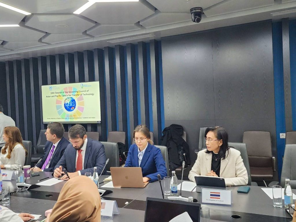 ดร.ชุติมา เอี่ยมโชติชวลิต ผู้ว่าการสถาบันวิจัยวิทยาศาสตร์และเทคโนโลยีแห่งประเทศไทย (วว.) ในฐานะผู้แทนปลัดกระทรวงการอุดมศึกษา วิทยาศาสตร์ วิจัยและนวัตกรรม (ปอว.) พร้อมด้วย ดร.บุณณนิดา โสดา ผอ.กองวิเทศสัมพันธ์ วว. เข้าร่วมการประชุม The 19th Session of the Governing Council of the Asian and Pacific Centre for Transfer of Technology (APCTT) ซึ่งจัดโดย APCTT, United Nations Economic and Social Commission for Asia and the Pacific (UNESCAP) และ Agency for Innovative Development, Ministry of Higher Education, Science and Innovation ณ กรุงทาชเคนต์ ประเทศอุซเบกิสถาน