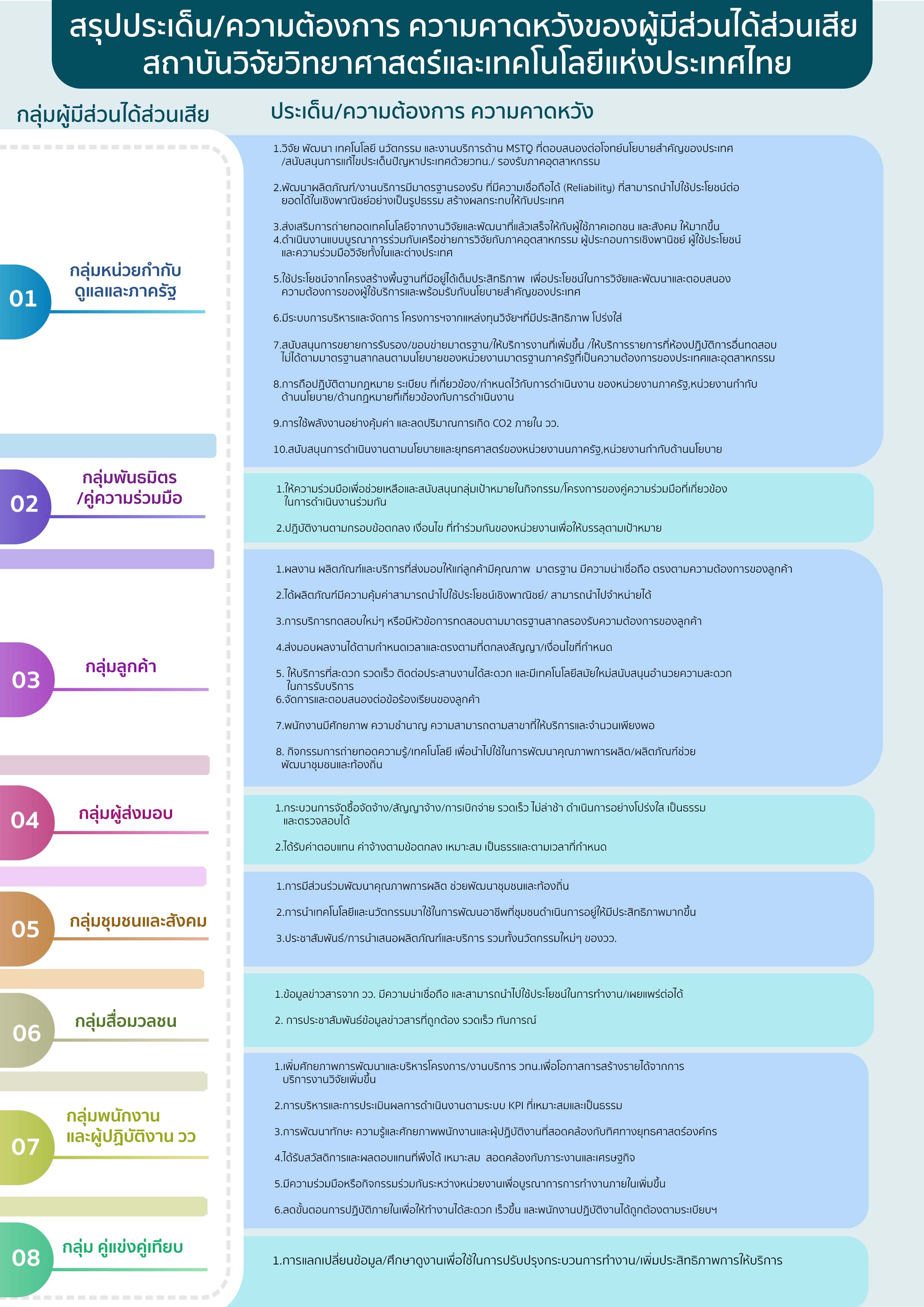 สรุปความต้องการความคาดหวังของผู้มีส่วนได้ส่วนเสียตามกลุ่มประเภทและตามกลุ่มงานของ วว.