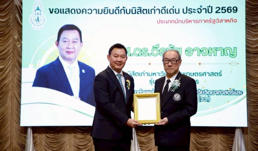 อ่านต่อ ผศ.ดร.วีรชัย อาจหาญ ผู้ว่าการ วว. รับโล่นิสิตเก่าดีเด่น ประจำปี 2569วว. จัด Mini-Symposium 2026 เสริมสร้างความร่วมมือด้านนวัตกรรมสุขภาพ/สมุนไพร
