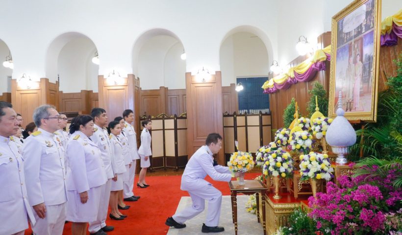 ศ.ดร.ศุภชัย ปทุมนากุล ปลัดกระทรวงการอุดมศึกษา วิทยาศาสตร์ วิจัยและนวัตกรรม (อว.) นางสาววราภรณ์ รุ่งตระการ รองปลัดกระทรวง อว. พร้อมด้วยคณะผู้บริหารระดับสูงในสังกัดกระทรวง อว. หั…