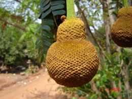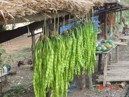 ผลเป็นฝัก (Pod. Legume) ขนาด 2 - 3 x 25 -35 เซนติเมตร ขนาดเล็กว่าสะตอ ฝักบิดเวียนเล็กน้อย