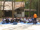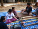 กลับถึงศูนย์ทอเสื่อและย้อมผ้า แล้วเดินมาหอประชุมเร่งรีบไป