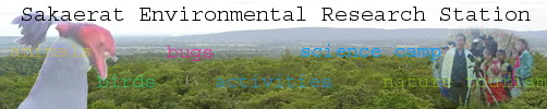 SERS ENVIRONMENT GEOGRAPHY The climate at SERS is tropical with no occurrence of frost. The winters are cool and dry, while the summers are hot and humid. Average maximum temperature is 35 ° C, and the average low is 16 ° C. The wet-season occurs from May to mid-October, with rainfall peaks in May and September. The average annual rainfall is 1200mm. SERS occupies an area of 80km ² , (approximately 48, 750 rai), on the edge of the Khorat Plateau, at longitude 101 ° 51 east and latitude 14 ° 30 north. The stations grounds rise from 250m above sea-level to 762m at the top of its highest mountain, Khao Phiat. Mountains dominate the south-west region, with the slopes easing to smaller hills in the north-east. Bedrock is exposed only along streams and at the escarpments bounding SERS on the south-east, elsewhere there is heavy soil and vegetation cover. The entire area appears to be underlain with sandstone. No mineral deposits of economic importance have been found within the station boundaries, except for laterite soils which have been used for road construction. VEGETATION SERS has two major natural vegetation types. Both are primary forest, more than 400 years old. The majority of the vegetation is dense dry-evergreen forest, except for the north and northeast sections of the SERS where an open dry-dipterocarp forest occurs. Several small areas of bamboo, Areca sp. are found in the dry-evergreen forest at higher elevations. The boundary between the two types of forest is sharp; though between them narrow strips of transitional mixed deciduous vegetation can be found. The dry-evergreen forest is considered an intermediate between tropical rainforest and mixed deciduous. At SERS, the dry-evergreen forest has a dense, four-storey canopy. This forest dominates the south-west section of the station, extending north-east to cover 60% of the station. It includes species such as Hopea ferrea , Hopea odorata and Hydnocarpus ilicifolia . The dry-dipterocarp forest occupies the rolling hills in the north-east of the station; here sandstone boulders and laterite are common. It covers 18% of the station area. Dry-dipterocarp forests are open, generally consisting of uniformly spaced trees, with sparse foliage allowing the sun's ray to reach the ground. Vegetation in this forest is more seasonal, but common trees are Shorea obtusa , Dipterocarpus intricatus , Shorea siamensis and Gardenia sootepensis . The remaining area is composed of reforested land (18%), grassland (1%), bamboo (1%), and the office and operational buildings (2%). WILDLIFE The natural vegetation at SERS supports a high faunal diversity. Some 430 vertebrate species are known to be present at SERS. While some animals are regular inhabitants of SERS, others pass through on migratory routes or move between SERS and the adjacent Khao Yai National Park . There are around 230 birds which have been reported at SERS. The Siamese Fireback pheasant ( Lophura diardi ), also the symbol of SERS, is a common sight near the office and dormitory buildings, in the dry-evergreen forest. Other frequently encountered birds include the white-rumped shama ( Copsychus malabaricus ), hanging parrots ( Loriculus vernalis ), owlets ( Athene brama ), the greater racket-tailed drongo ( Dicrurus paradiseus ) and the crested serpent eagle ( Spilornis cheela ). Nearly 80 species of mammals are known from SERS. This includes the serow ( Naemorhedus sumatraensis ), one of 15 species protected under Thai law due to their rarity and risk of extinction. Other mammals that occur at SERS but which are not seen frequently are the pangolin ( Manis javanica ), lesser mouse deer ( Tragulus javanicus ), civets, and bears. There are a number of mammals however, which are commonly seen in the forest near the roads and pathways. This includes the barking deer ( Muntiacus mantjak ), the Indochinese ground squirrel ( Menetes berdmorei ), pig-tailed macaque ( Macaca nemestrina ), slow loris ( Nycticebus coucang ) as well as various bat, rodent and flying squirrel species. Numerous lizards and snakes inhabit the SERS forest, just fewer than 90 species. This includes commonly seen snakes like the big-eyed pit viper ( Trimeresurus macrops ), king cobra ( Ophiophagus hannah ), green cat snake ( Boiga cyanea ), and the green and red-necked keelback ( Rhabdophis subminiatus ). Less frequently seen snakes include pythons. Tookays ( Gekko gecko ) are frequently heard and seen around the buildings and forest. Other lizards found at SERS include the flying lizards ( Draco sp. ), butterfly lizards ( Leiolepis sp. ), slender-toed geckos ( Cyrtodactylus sp. ) and the Indo-Chinese water dragon ( Physignathus cocincinus ). There are 26 amphibian species known from the SERS waterways. Tree frogs include the common treefrog ( Polypedates leucomystax ), the Chantaburi warted treefrog ( Theloderma stellatum ), and two Chirixalus species, Hansen's bushfrog and Nong Khor bushfrog. There are ten microhylid species, including the Truncate-snouted burrowing frog ( Glyphoglossus molossus ) and the Inornate froglet ( Micryletta inornata ). In addition, there is a wide array of invertebrate species, Please click on the links under the heading “Checklist of Species” for a full list of the species found at SERS.