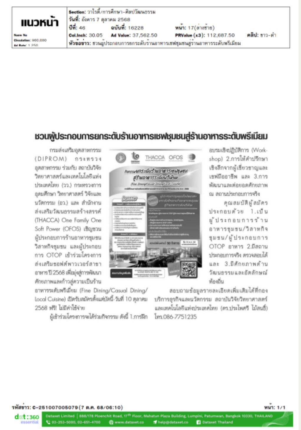 ชวนผู้ประกอบการยกระดับร้านอาหารเชฟชุมชนสู่ร้านอาหารระดับพรีเมียม