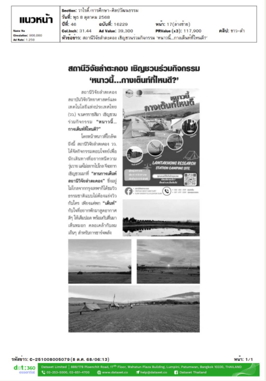 สถานีวิจัยลำตะคอง เชิญชวนร่วมกิจกรรม หนาวนี้...กางเต็นท์ที่ไหนดี