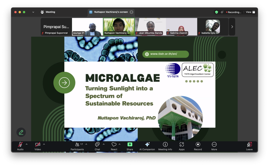 As the representative from Thailand and the Asia-Pacific region, Dr. Nuttapon delivered a presentation titled “Microalgae: Turning sunlight into a spectrum of sustainable resources.” His talk emphasized the potential of microalgae to convert solar energy into diverse and sustainable resources, offering innovative pathways to support the achievement of Sustainable Development Goal 7 (Affordable and Clean Energy).