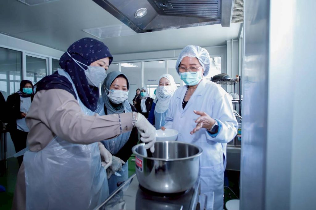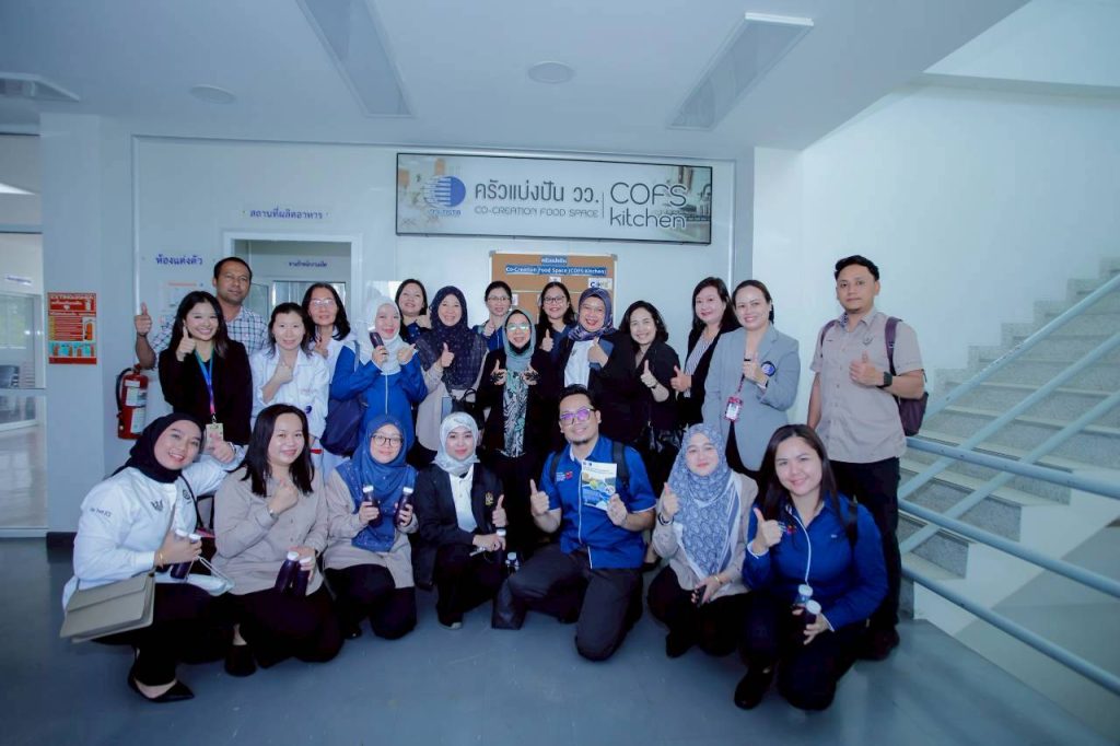 The delegation also visited TISTR’s Co-Creation Food Space (COFS), guided by Mrs. Sirinan and Ms. Rewadee Meesat, Senior Research Officer of InnoFood. COFS is a one-stop service facility offering food and beverage R&D, product formulation, GMP-compliant production and packaging, ISO/IEC 17025:2017-accredited sensory testing, training programmes, and food processing technology transfer. It is fully equipped with machinery and appliances to support SMEs and OTOP entrepreneurs in enhancing market competitiveness, promoting career development, and strengthening income stability.