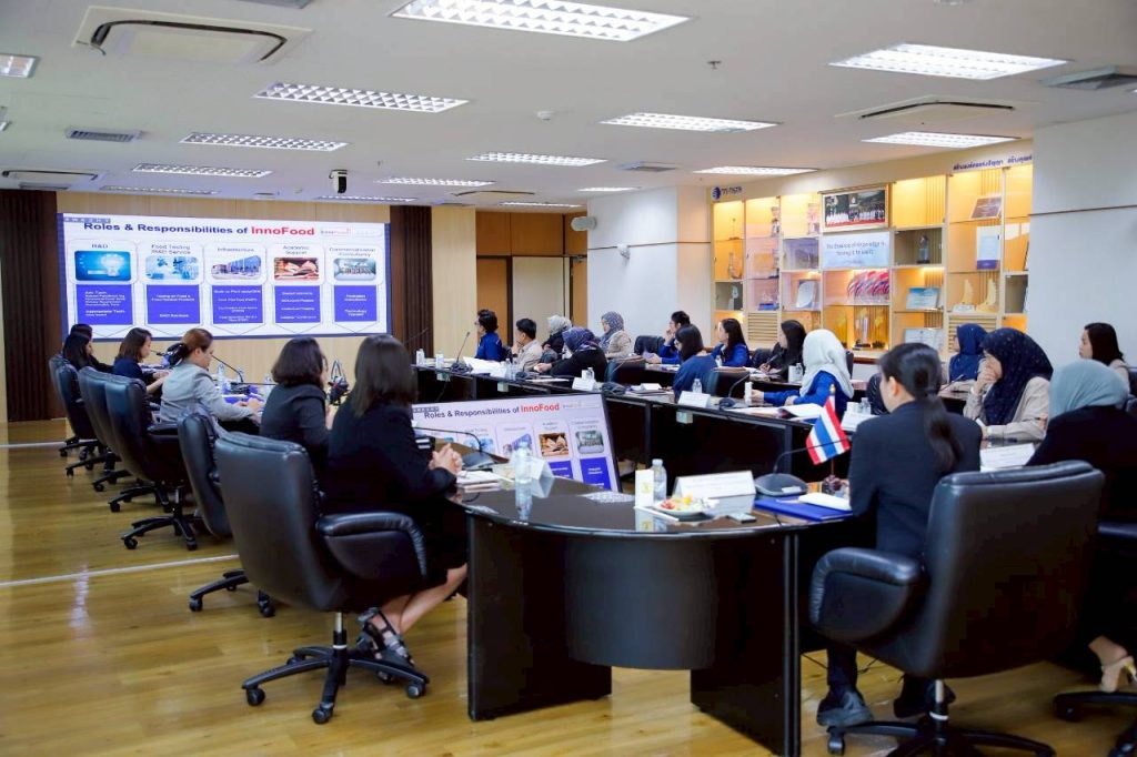 The visit featured a welcome speech by Dr. Rochana, followed by a presentation by Dr. Thanchanok Muangman, Director of InnoFood, highlighting the Centre’s mission, key R&D initiatives, and the application of research and technology transfer to support entrepreneurs.