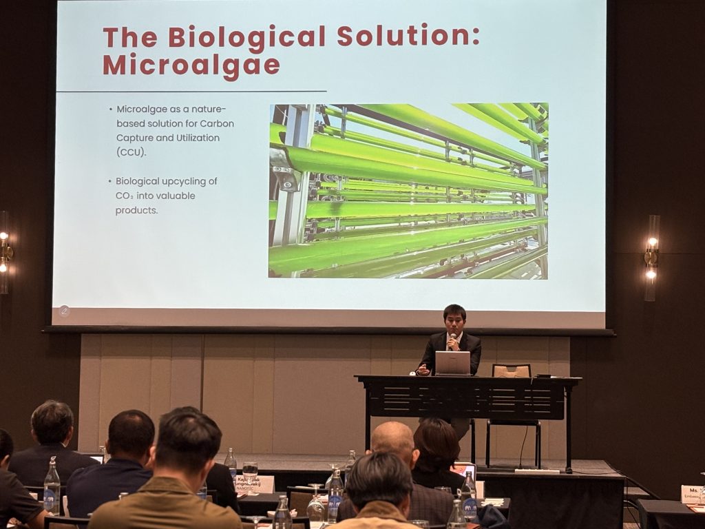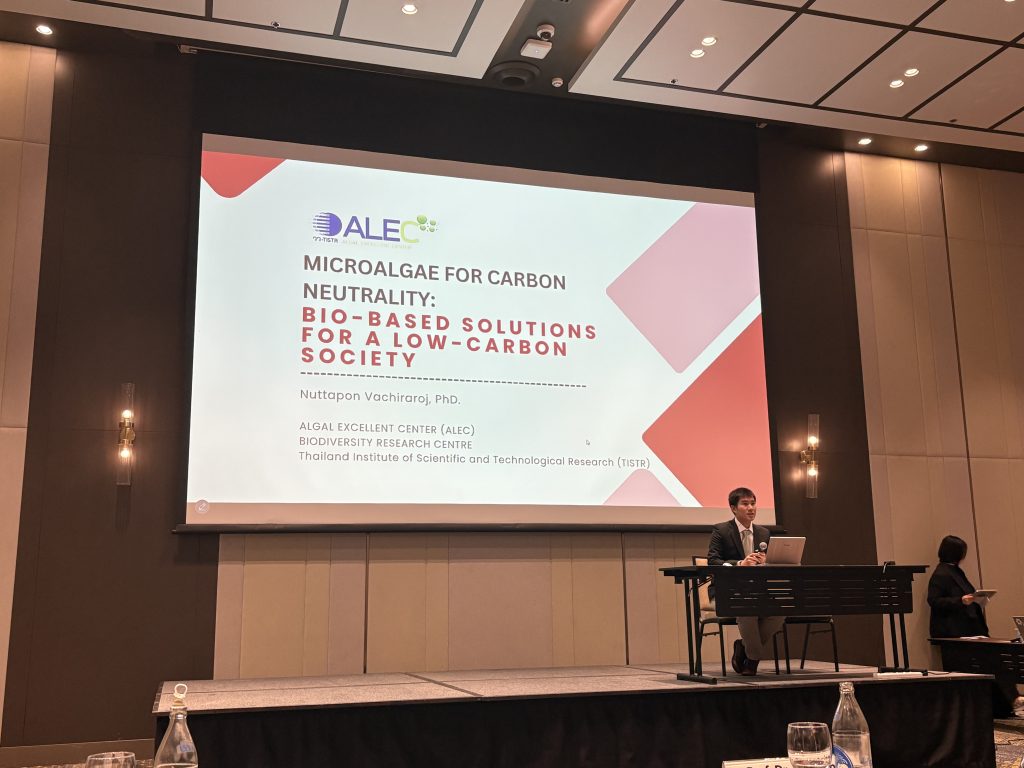 On this occasion, Dr. Nuttapon Vachiraroj, researcher from TISTR, represented the Institute as a speaker and delivered a presentation entitled “Microalgae for Carbon Neutrality: Bio-Based Solutions for a Low-Carbon Society.” The presentation highlighted the potential of microalgae as a bio-based resource to support carbon neutrality goals and sustainable development.